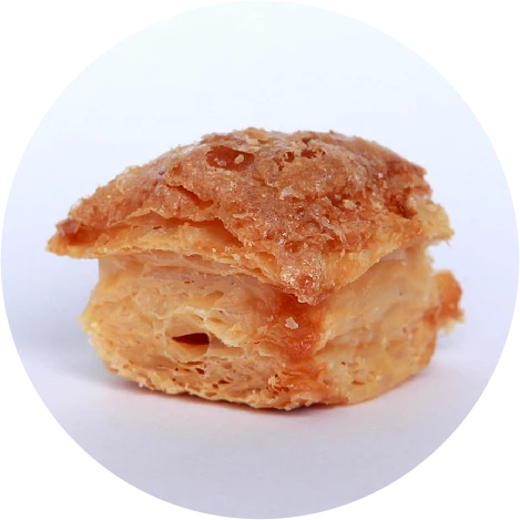 イタリア南部の都市ナポリで、かつては王様に献上されていたという郷土菓子「Sfogliatelle(スフォリアテッラ)」を独自の製造技術を用いて美しいドーナツ状に焼き上げました。とまらんパイ同様、こだわりのサクサク感と鼻から抜ける発酵バターの芳香な香りを楽しめるシンプルな逸品です。